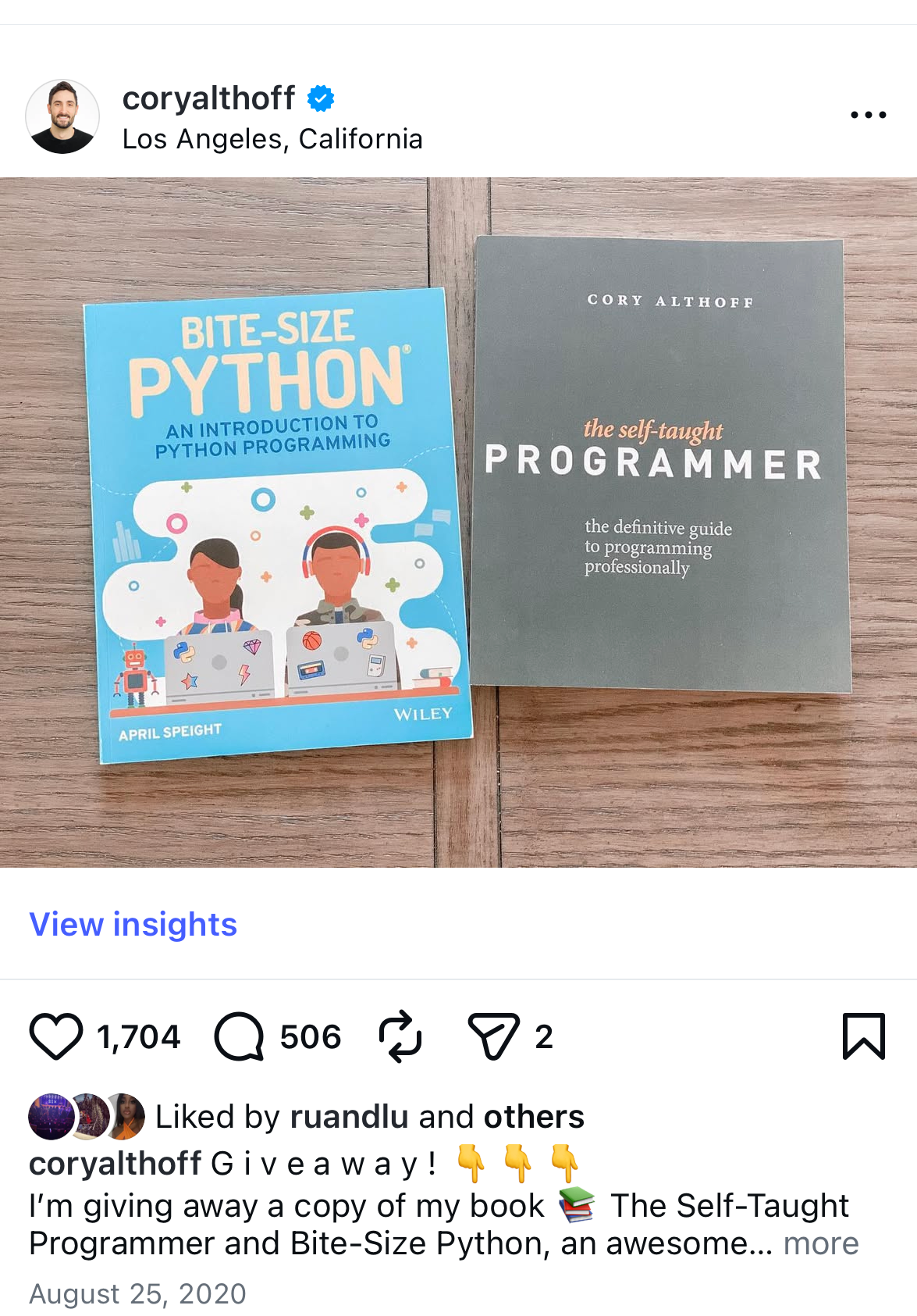 When I was promoting my book, I did a ton of giveaways on Instagram.