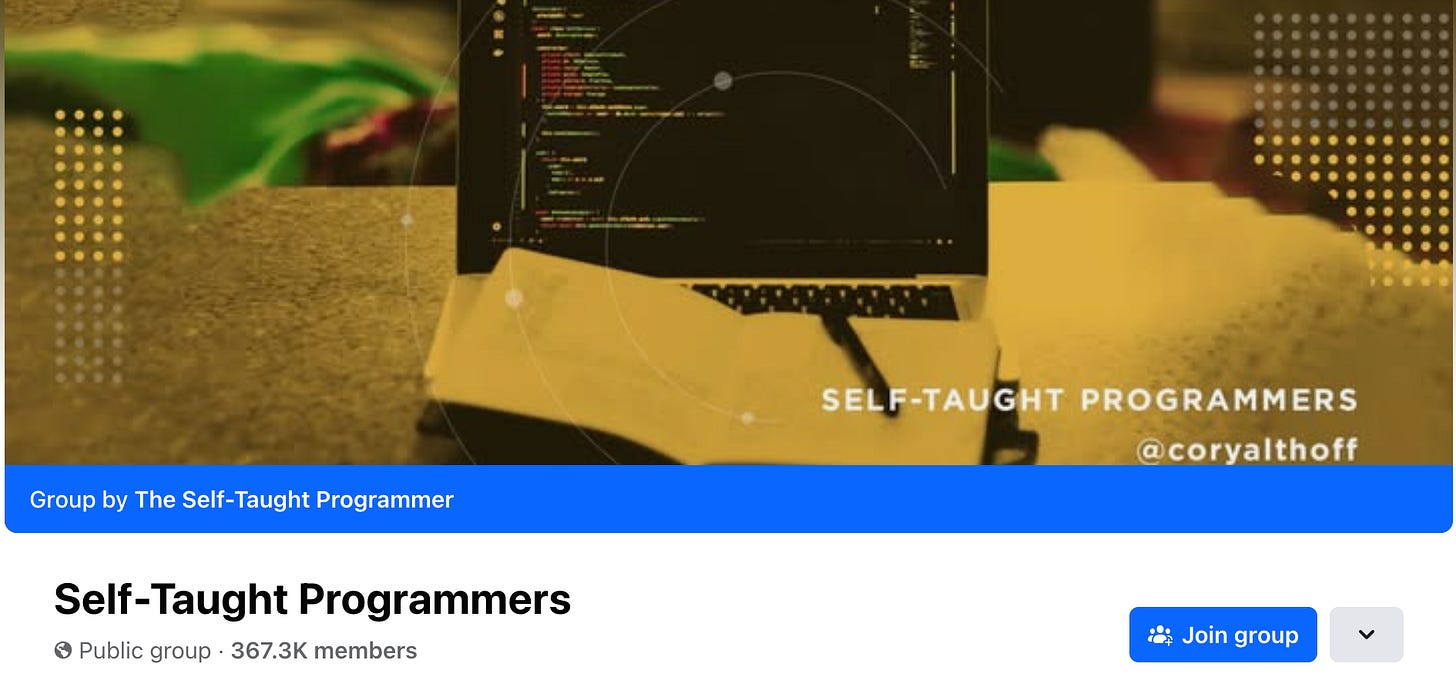 Then I created a Facebook group called Self-Taught Programmers, which eventually grew to 365K members through word of mouth.